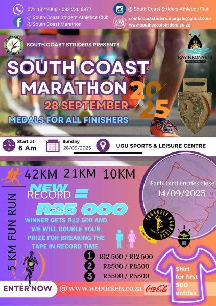 • Information: www.southcoastriders.co.za | South Coast Striders Athletics Club on Facebook