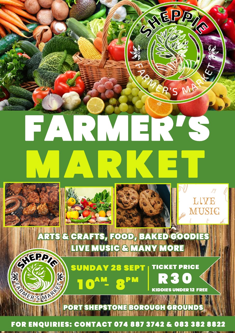 Sheppie Farmer’s Market 0Likes Sheppie Farmer’s Market Event Categories: Family Fun Market Things to do DescriptionSheppie Farmer’s Market Arts & Crafts • Food • Baked Goodies • Live Music & Many More Date: Sunday, 28 September 2025 Time: 10 AM – 8 PM Location: Port Shepstone Borough Grounds Contact: 074 887 3742 • 083 382 8822 Entry/Ticket Info: R30 per person (kiddies under 12 free) Photos Map Loading... No Records Found Sorry, no records were found. Please adjust your search criteria and try again. Maps failed to load Sorry, unable to load the Maps API. Enter your locationGet Directions Travel modeDrivingWalkingBicyclingPublic Transport Distance unitsMilesKilometers Event Dates 28th September 2025, 10:00 am-8:00 pm Event Categories: Family Fun Market Things to do Next