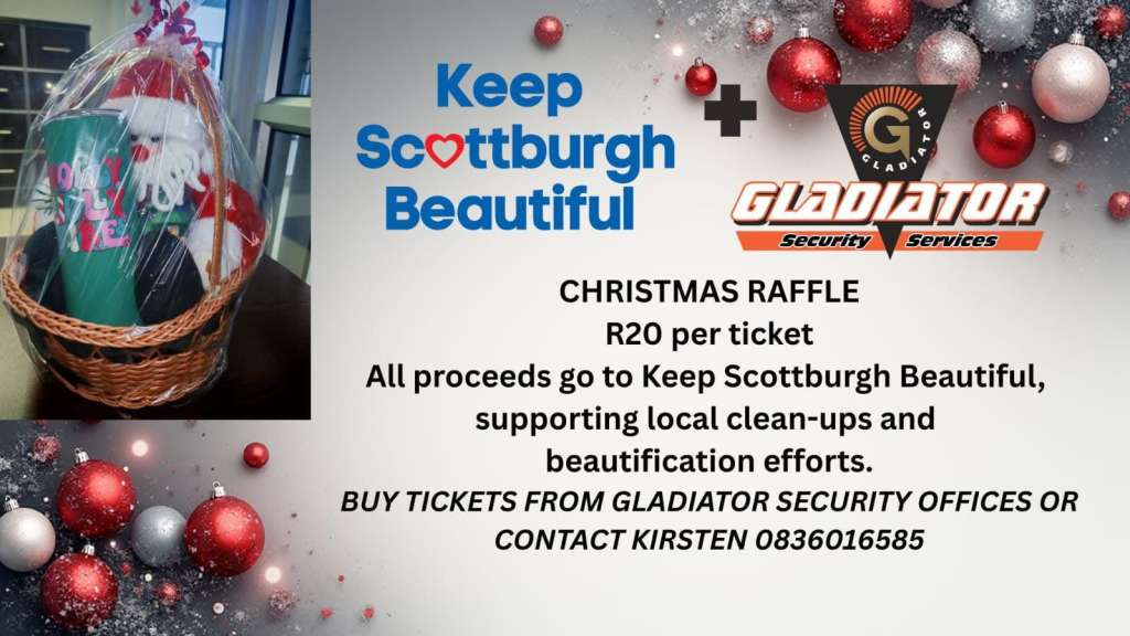 Keep Scottburgh Beautiful Christmas Raffle 0Likes Keep Scottburgh Beautiful Christmas Raffle Event Category: Things to do DescriptionAll proceeds go to Keep Scottburgh Beautiful, supporting local clean-ups and beautification efforts. Features a gift basket prize. Ticket Price: R20 per ticket Buy tickets from Gladiator Security offices or Contact Kirsten – 083 601 6585 Photos Map Loading... No Records Found Sorry, no records were found. Please adjust your search criteria and try again. Maps failed to load Sorry, unable to load the Maps API. Enter your locationGet Directions Travel modeDrivingWalkingBicyclingPublic Transport Distance unitsMilesKilometers Event Dates 18th November 2025, 8:00 am-5:00 pm 19th November 2025, 8:00 am-5:00 pm 20th November 2025, 8:00 am-5:00 pm 21st November 2025, 8:00 am-5:00 pm Event Category: Things to do Previous Next
