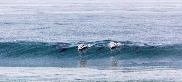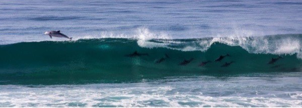 Large pod of fun-loving bottlenose dolphins spotted frolicking in the waves near the Scottburgh Caravan Park.