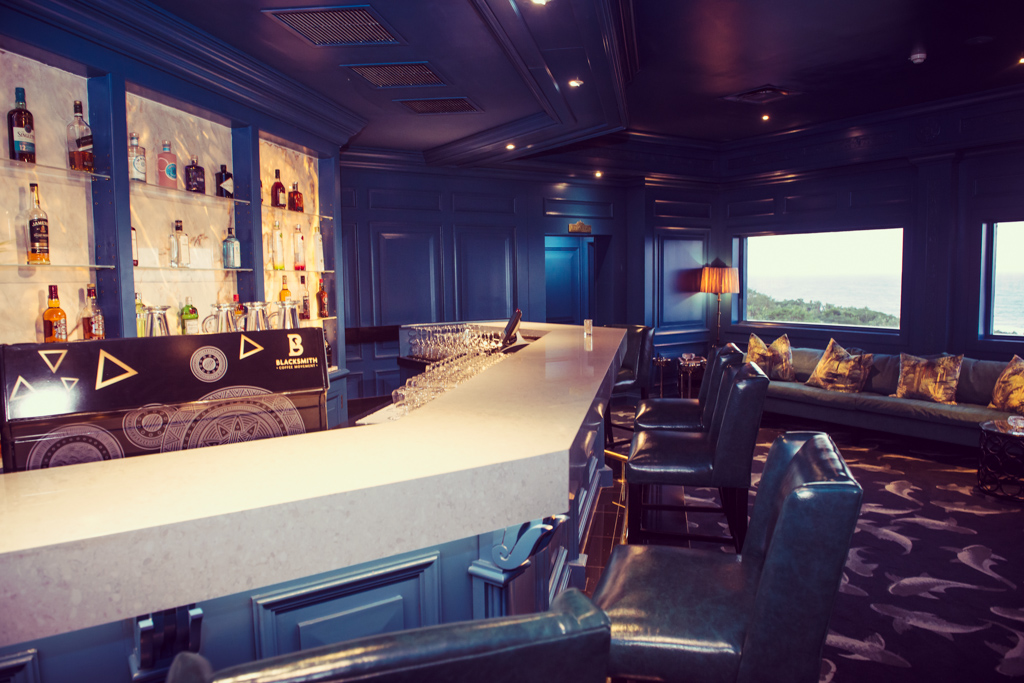 CAPTION: The interior of the Wild Coast Sun Salon Privé is vibrant blue, inspired by the ocean